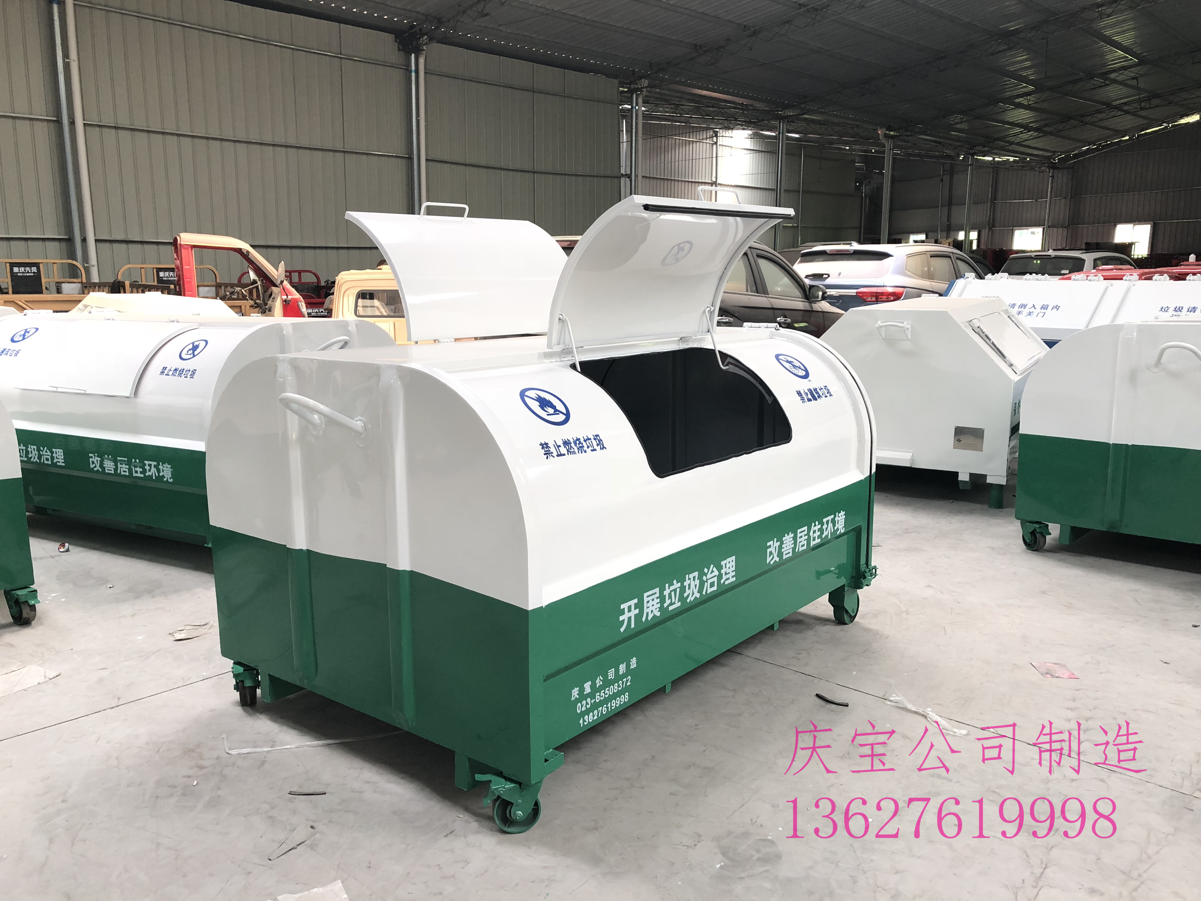 - 重慶垃圾箱收集站點定制完成準備交貨 重慶垃圾箱收集站點多分類垃圾桶定制加工,為了響應垃圾分類政策的有效應用施行,重慶市慶寶園林設施制造有限公司與業主方不斷探索垃圾分類投放站點的創新與實用相接合,滿足小區垃圾分類投放的基本要求。