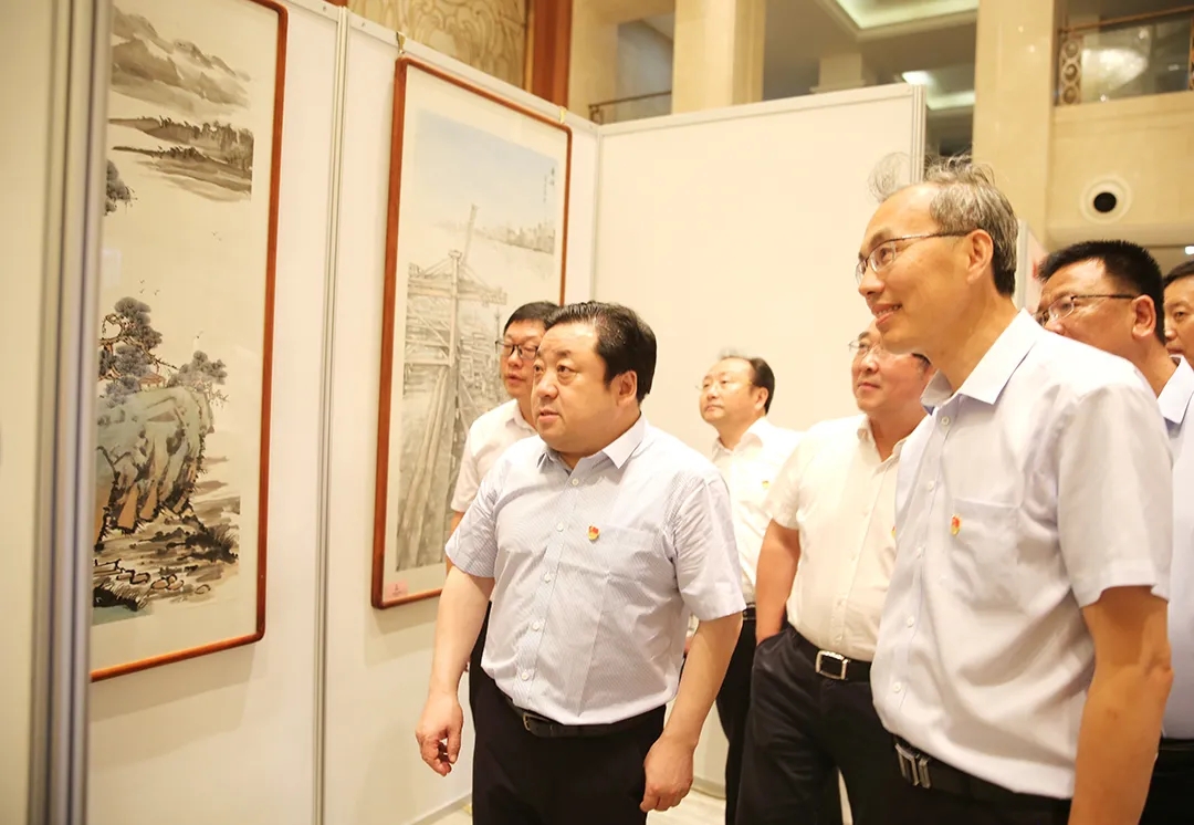 晚會(huì)開始前,周正雄還帶領(lǐng)與會(huì)人員參觀了集團(tuán)職工書畫展。本次書畫展參展作品內(nèi)容豐富,形式多樣,立意新穎,用書畫定格歷史瞬間,串聯(lián)起波瀾壯闊的百年征程,呈現(xiàn)出個(gè)性獨(dú)特的藝術(shù)魅力,蘊(yùn)含著飽滿熾熱的藝術(shù)激情,具有較強(qiáng)的藝術(shù)震撼力,受到了大家的一致好評(píng)。