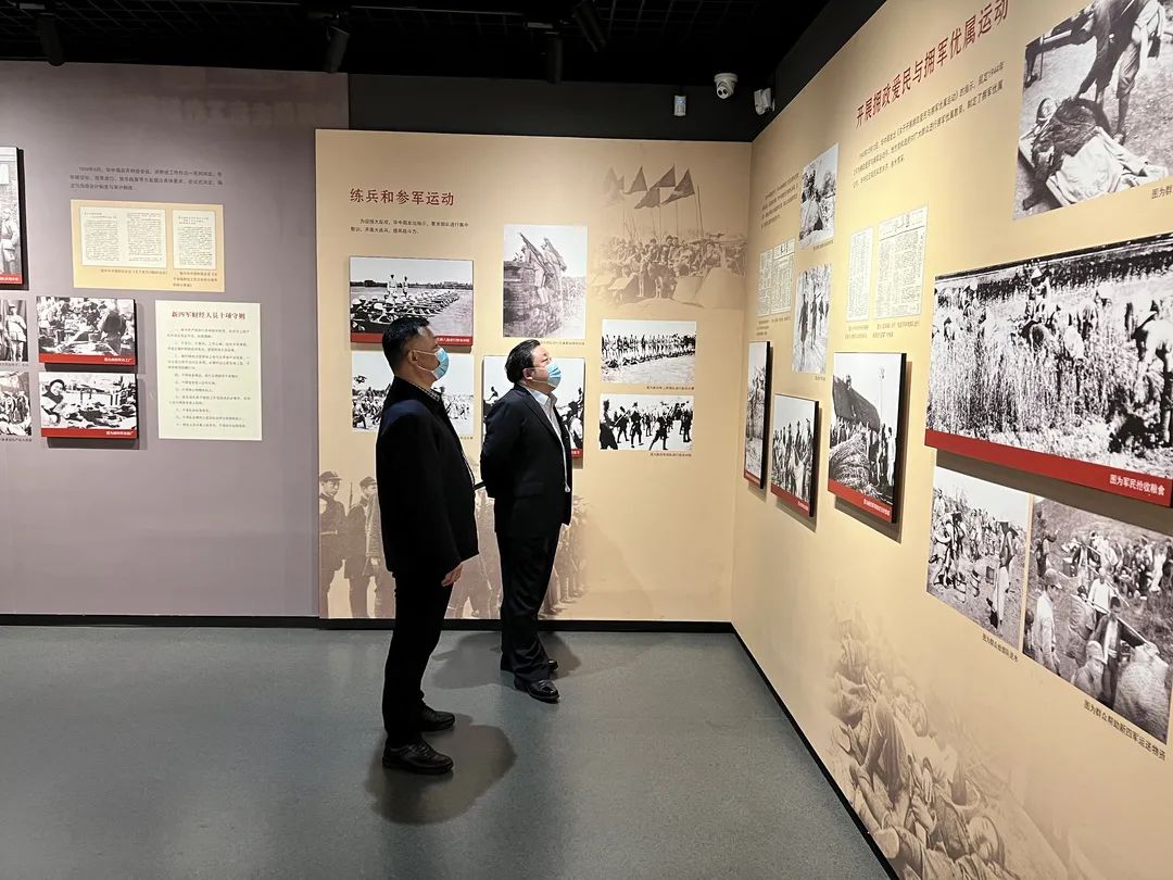 周正雄一行參觀了華中局歷史陳列展,該陳列展系統(tǒng)再現(xiàn)了華中局的歷史和輝煌,凸顯了中國共產(chǎn)黨在領(lǐng)導(dǎo)敵后抗戰(zhàn)中的特殊作用和偉大貢獻(xiàn)。一幅幅圖片、一件件實物、一個個場景,把大家?guī)Щ亓酥袊伯a(chǎn)黨波瀾壯闊的偉大征程。大家仔細(xì)觀看史料,認(rèn)真學(xué)習(xí)新四軍的革命史、華中局在鹽城工作的戰(zhàn)斗歲月。