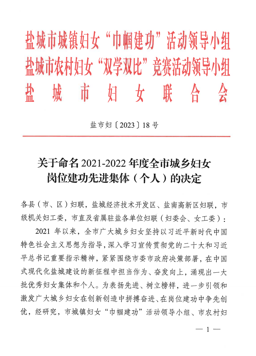 祝賀!她們被認定為2021-2022年度全市城鄉婦女崗位建功先進集體(個人)!