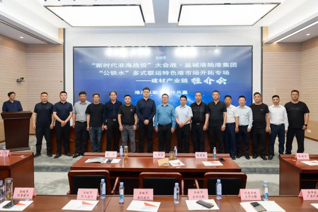 近日,陸港集團召開“新時代淮海戰役”大會戰·鹽城港陸港集團“公鐵水”多式聯運特色港市場開拓專場——建材產業鏈推介會,邀請鹽城、南通、連云港、江西等企業代表參加,圍繞建材產業鏈發展進行深入交流。鹽城港集團黨委委員、副總經理梁洪兵出席活動并致辭。集團生產運營部、陸港事業部、陸港集團相關負責人參加。