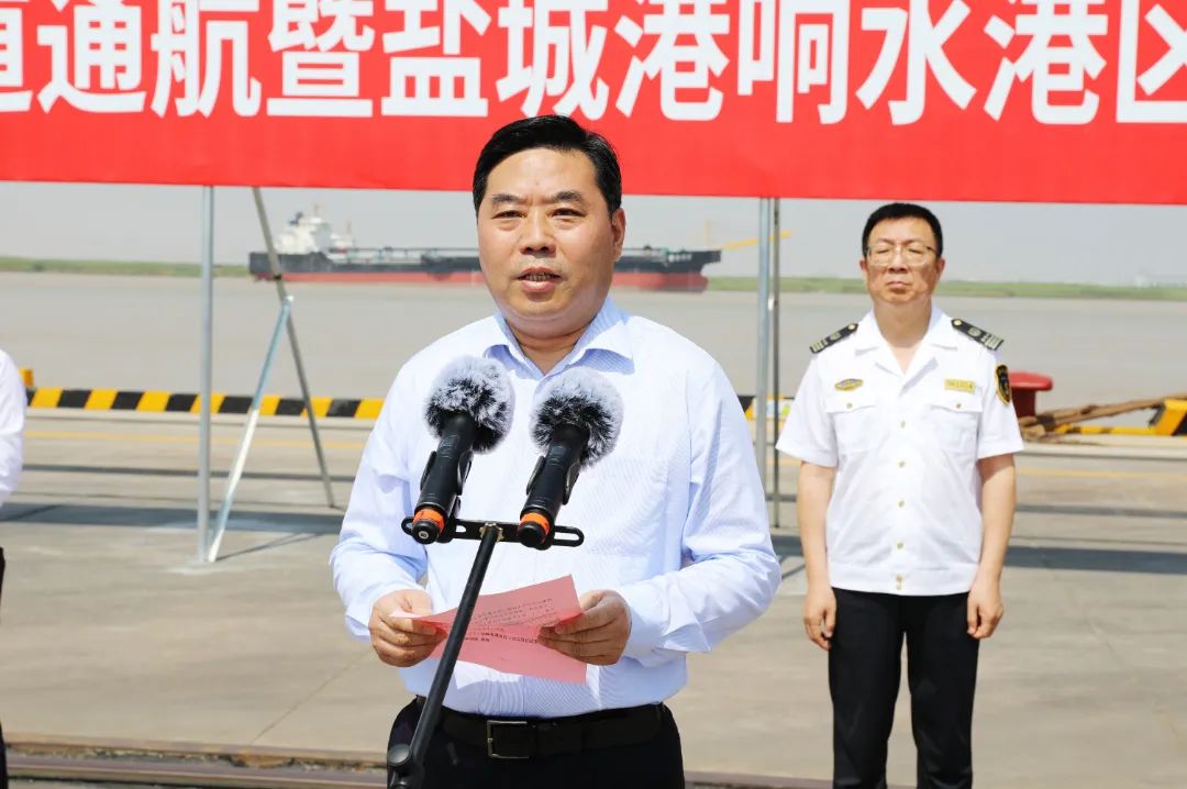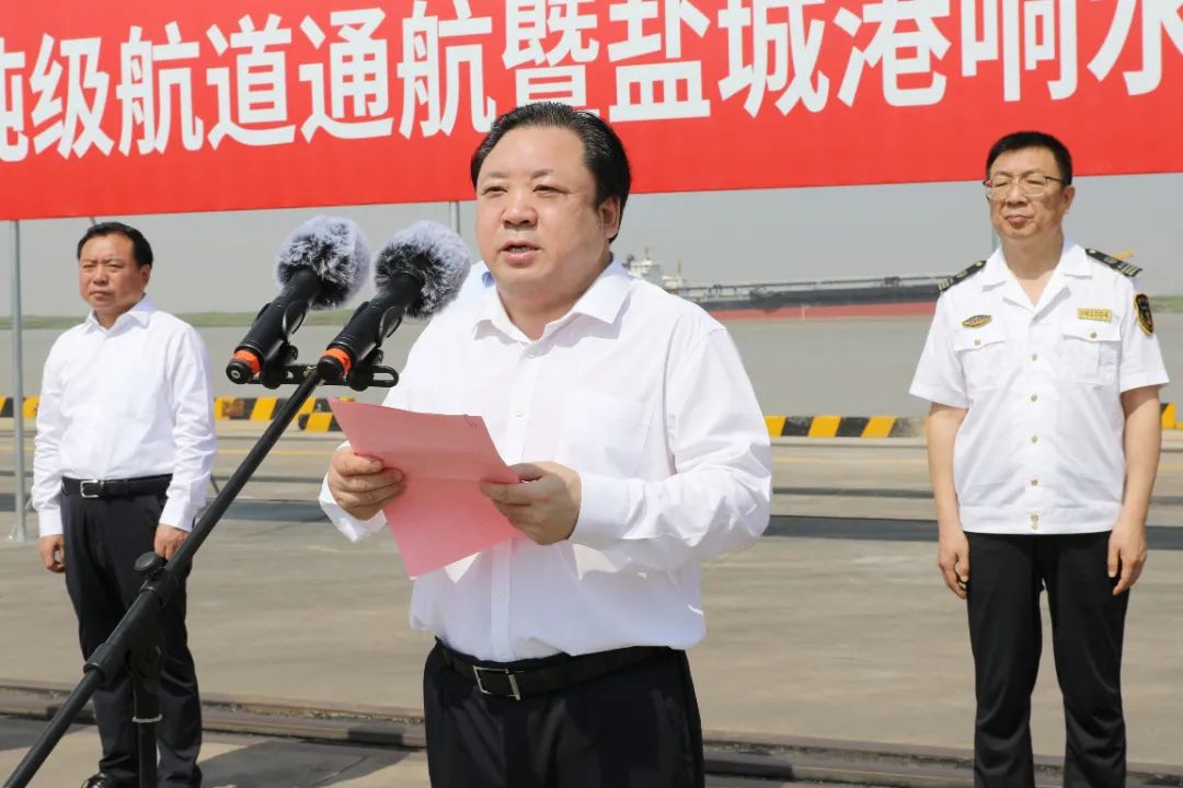 市交通運輸局黨委書記葛春寬,鹽城海事局局長程欣,鹽城出入境邊防檢查站站長李興華,鹽城海關二級高級主辦李健,鹽城港集團黨委副書記、董事、總經理陸帥出席活動。相關單位及部門負責同志,船貨代公司及相關企業代表等參加。