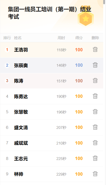 本次培訓(xùn)立足降本增效,創(chuàng)新采用電子簽到、無(wú)紙化智能考試,一方面節(jié)約了時(shí)間、人力、紙張成本,另一方面省略了會(huì)前簽到、批改試卷、統(tǒng)計(jì)排名等環(huán)節(jié),大大提高工作效率,推動(dòng)培訓(xùn)工作的信息化管理邁上新臺(tái)階。