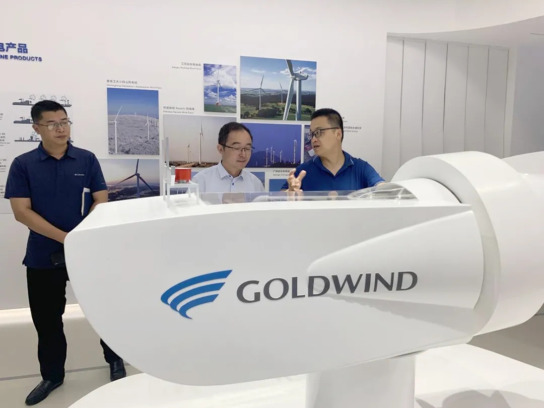 金風科技制造中心總經理潘晉對范云飛一行的到訪表示歡迎,并陪同參觀了“碳中和”智慧園區、全球監控中心、能源互聯網及交直流微網研發測試中心和電控制造廠等項目載體。金風科技制造中心總經理助理李恒介紹了金風科技相關發展情況。