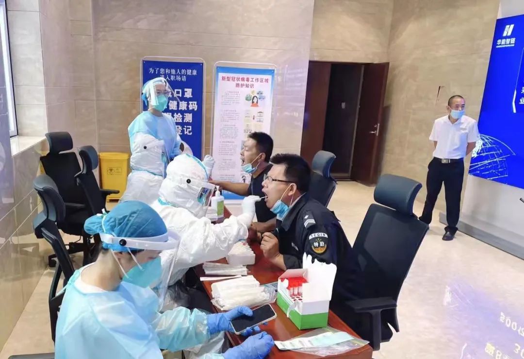 同時為確保港區核酸采集應檢盡檢、不落一人,射陽港區組織醫護人員到建設工地設立核酸采集點,幫助無智能手機的外來務工人員解決信息登記難題,全面做好核酸采集工作。當日核酸采集持續3個多小時,共完成565人次核酸采樣量。