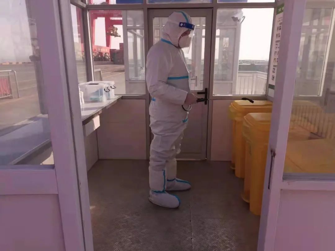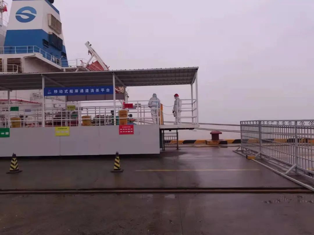 嚴格執行人員準入制度,進出人員需佩戴口罩,并進行體溫測量、信息登記、蘇康碼及行程碼核查。安排專人定時對碼頭登梯口、防疫值守崗亭、脫卸區、專班集中居住區、專班人員運輸車輛、電梯、門把手、食堂等重點場所進行清潔消毒。碼頭設立固定的巡查人員24小時巡查,同時外輪靠泊期間,嚴格落實卡口、登輪梯口24小時專人值守,強化梯口管理,對所有登輪人員進行核實登記,監督人員防護措施落實情況,凡是通過梯口人員,必須提供48小時內有效核酸檢測證明、疫苗接種證明。