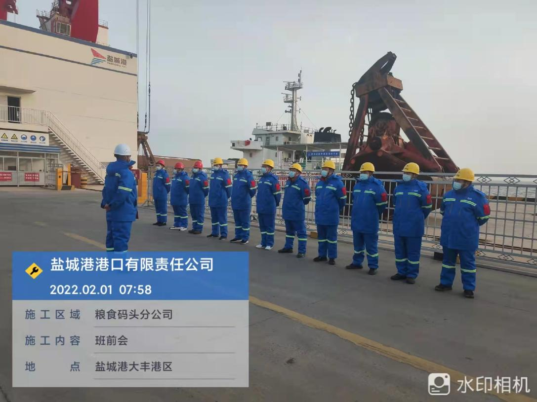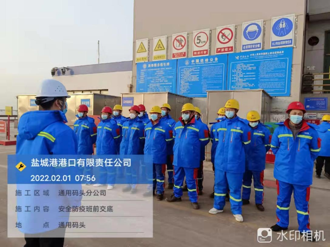 農(nóng)歷正月初一,鹽城港大豐港區(qū)港口公司各子(分)公司在碼頭(作業(yè)現(xiàn)場),如往常一樣準(zhǔn)點(diǎn)開始作業(yè)班前會(huì),進(jìn)行安全生產(chǎn)、疫情防控工作交底。