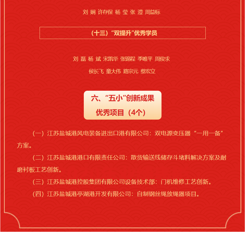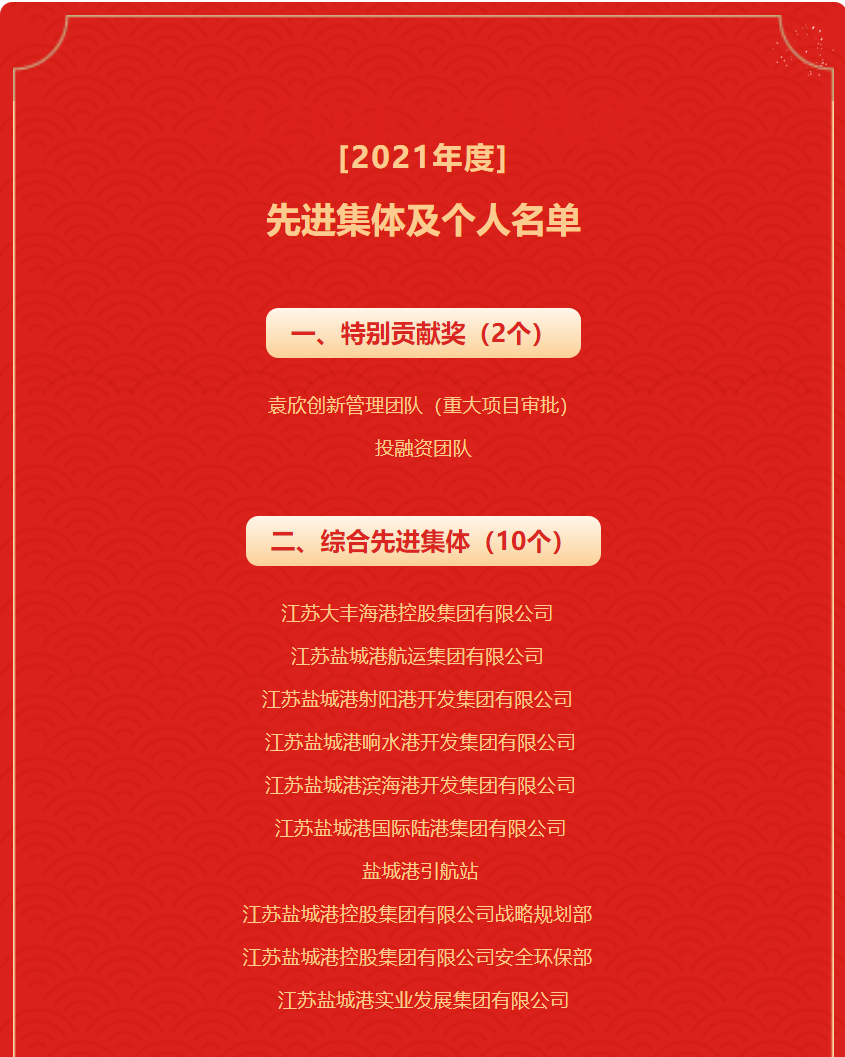 江蘇鹽城港控股集團(tuán)有限公司 2021年度先進(jìn)集體及個人名單