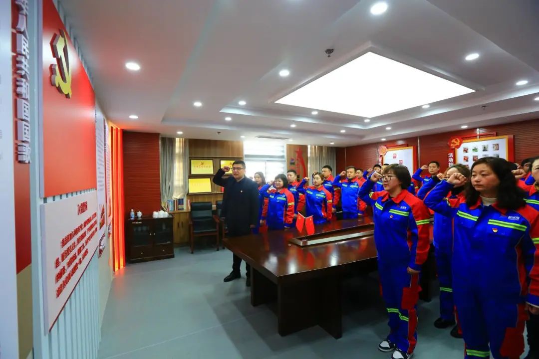 “我志愿加入中國共產(chǎn)黨,擁護(hù)黨的綱領(lǐng),遵守黨的章程,履行黨員義務(wù)……”面對鮮紅的黨旗,預(yù)備黨員們在領(lǐng)誓人的帶領(lǐng)下,右手舉拳,聲音洪亮,鄭重宣誓,展示著他們對黨堅定不移的忠誠和信念。