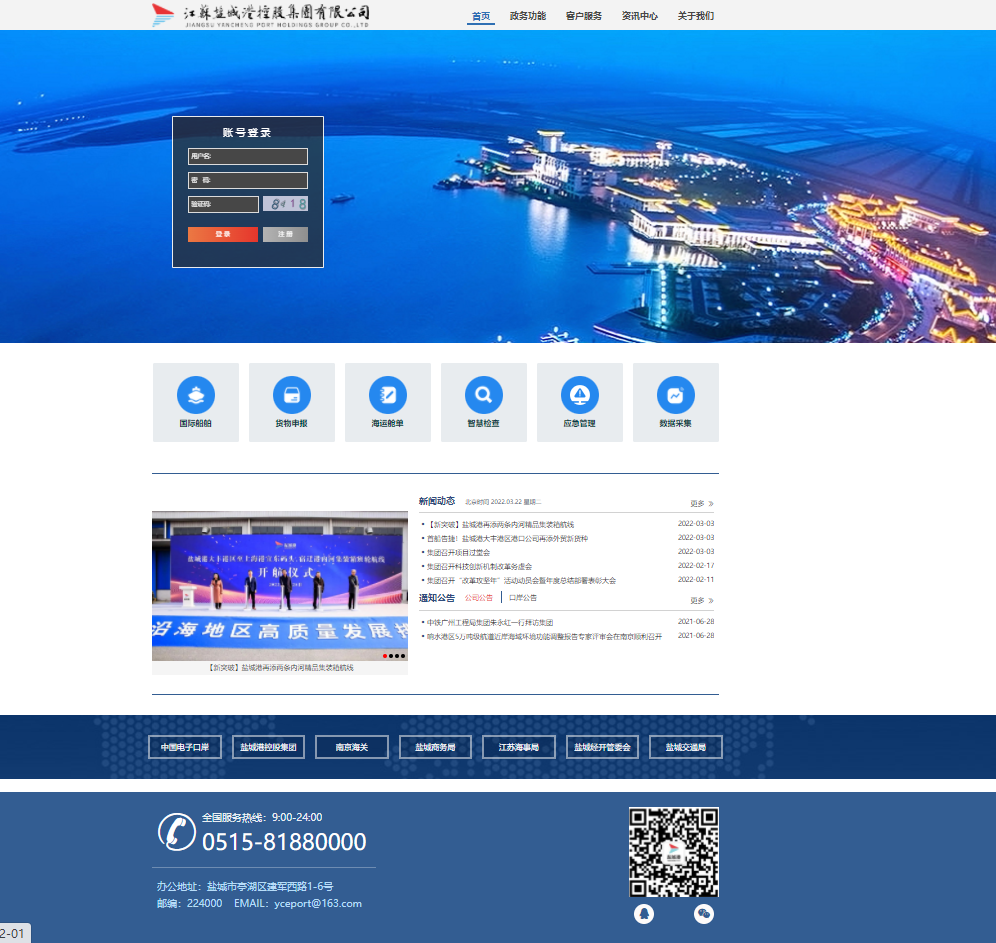 鹽城電子口岸是集電子政務、電子商務、電子物流三位一體,跨部門、跨行業、跨地區的口岸公共信息共享平臺,平臺涵蓋碼頭樣品管理、口岸物流協同作業、港口信息化作業、港區結算管理、港航EDI中心等功能。