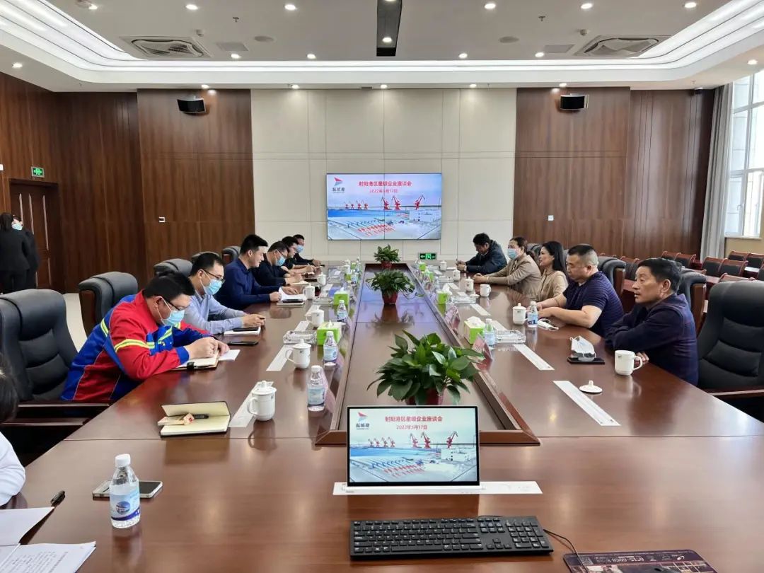 為加強與重點客戶的交流溝通,增強客戶對射陽港區(qū)的信心,穩(wěn)定經(jīng)營業(yè)務(wù),5月17日下午,射陽港區(qū)召開星級合作企業(yè)座談會,風(fēng)電、物流、建材等多家企業(yè)負責(zé)人參加。