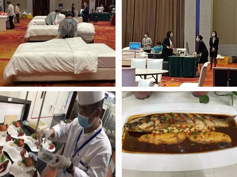 近日,鹽城港文旅集團旗下半島溫泉酒店參加了2022年鹽城市星級飯店從業人員技能競賽(選拔賽)。本次競賽設前廳服務(含服務英語考核),客房服務、中餐服務、西餐服務、烹飪技藝等項目。來自鹽城各星級飯店近60名選手參與,各施所長,一展風采。