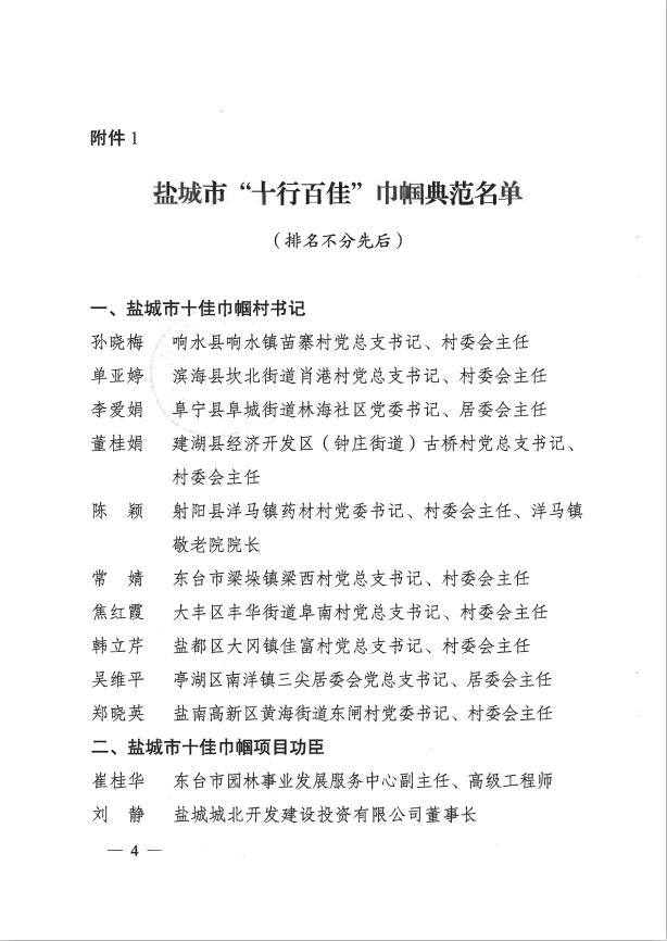近日,鹽城市婦女聯合會發布《關于表揚鹽城“十行百佳”巾幗典范暨鹽城市三八紅旗手的通報》,袁欣同志榮獲“鹽城市十佳巾幗項目功臣”“鹽城市三八紅旗手”榮譽稱號。