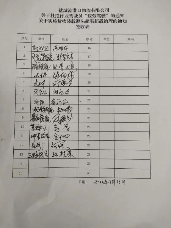 為全面做好港區(qū)作業(yè)車輛超限超載治理工作,切實加大貨運源頭治理力度,保障道路交通運輸安全。近期,鹽城港港口公司物流公司認(rèn)真組織職工學(xué)習(xí)貫徹國務(wù)院安委會安全生產(chǎn)“十五條”硬措施和鹽城港集團“三位一體”工作部署要求,堅持“人民至上,生命至上”的理念,嚴(yán)格落實《關(guān)于實施貨物裝載源頭超限超載的通知》、《關(guān)于杜絕作業(yè)駕駛員“疲勞駕駛”的通知》等文件要求,全力開展安全運輸“三步走”工作。