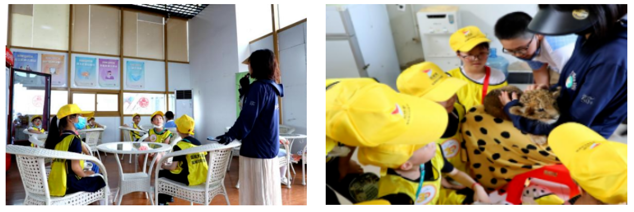 活動從參觀動物園開始,小朋友們在動物配餐區,學習動物科學配餐、營養知識,了解不同的動物需要有不同的配比食物,并親手為動物制作美食,當一回動物營養師,做一頓愛心滿滿的營養餐;在大熊貓館觀看大熊貓吃播,學習大熊貓的科普知識;跟著飼養員走進動物館舍,了解動物寶寶孕育過程并嘗試照顧新生動物,學習如何正確喂養動物、觀察動物,與動物朋友們共度美好時光;在海洋世界玩轉海洋樂園,觀看海豚表演。