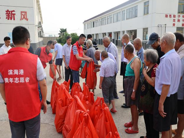 搭建地方黨建共建平臺,常態化與濱海縣臨淮鄉駐地部隊、國投電投集團濱海港航有限公司黨總支、臨淮鄉敬老院等單位建立黨建聯盟共建機制,搭建政治理論聯學、優勢資源共享、實踐活動聯辦、黨員隊伍聯建、中心工作聯促的“五聯”平臺,進一步增強黨組織的凝聚力、戰斗力和創新力。依照“資源共享、優勢互補、共同發展”的思路,主動融入地方發展格局,將黨組織的政治優勢轉化為相互促進經濟發展的“助推器”,充分利用“軍企”的地方特色黨建資源來促進港口經濟的連鎖發展。據統計,今年組建3支“黨員突擊隊”參加地方共建活動達4次,參加志愿者活動的有28人次,近日濱海港區黨總支還開展了“黨員進社區”活動,組團赴濱海縣臨淮鄉敬老院慰問孤寡老人39人,并為他們配送了牛奶及麥片等營養品。濱海港區為居民、職工辦實事,辦好事,讓黨建工作惠及更多居民和職工,“靚”出溫馨底色。