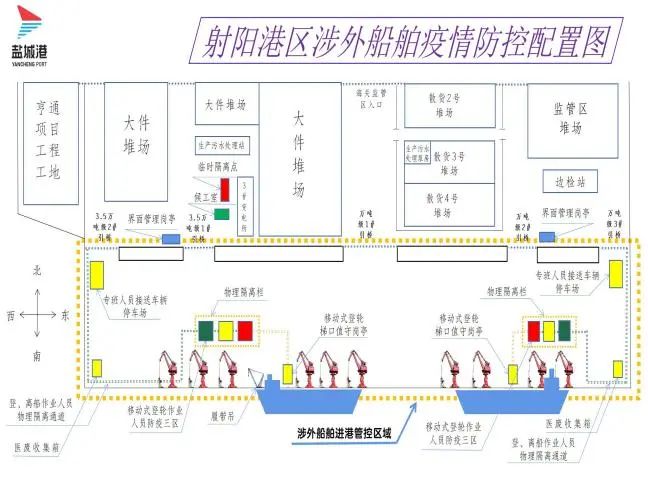 練內(nèi)功,行穩(wěn)筑基“守”規(guī)范。港區(qū)全面貫徹落實(shí)水路口岸疫情防控管理規(guī)定,嚴(yán)格按照涉外碼頭防控標(biāo)準(zhǔn),扎實(shí)推動(dòng)碼頭設(shè)備設(shè)施改造升級(jí)。港區(qū)根據(jù)水路口岸防控組審定的“射陽港區(qū)涉外船舶疫情防控配置圖”,改造完成了碼頭“三區(qū)兩通道”、“登輪人員梯口值守崗?fù)ぁ薄ⅰ敖缑婀芾韻復(fù)ぁ钡扔布O(shè)施,擴(kuò)展提升了自有監(jiān)控覆蓋范圍,為射陽港區(qū)口岸對外開放后的涉外船舶“三位一體”管理工作打下堅(jiān)實(shí)基礎(chǔ)。