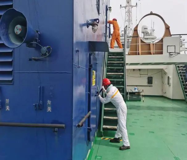 此次綜合應急演練活動分為消防演習和溢油演習兩個科目展開。首先進行的是消防演習,隨著演習總指揮的一聲令下,消防演習正式開始。隨著現(xiàn)場火災警報拉響,船長立即啟動消防應急程序并通過廣播通知船員失火部位,同時向灌河海事處匯報火災情況,灌河海事處隨即派遣正在灌河巡邏的“海巡06117”艇,靠前進行警戒指揮。“新海鯉”船員通過采用便攜式滅火器,啟動船上固定二氧化碳滅火系統(tǒng),成功撲滅明火。