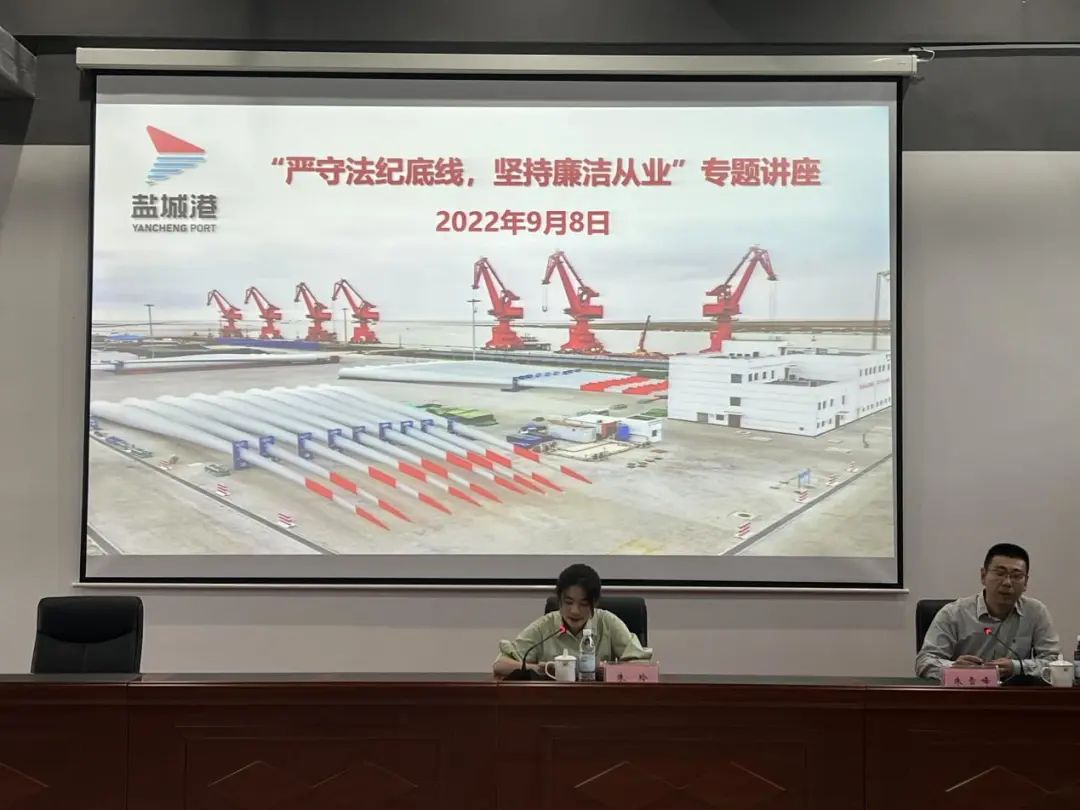 為進(jìn)一步提升港區(qū)全員服務(wù)、廉潔自律意識(shí),防范廉政風(fēng)險(xiǎn),營(yíng)造風(fēng)清氣正的干事創(chuàng)業(yè)氛圍。近日,鹽城港射陽(yáng)港區(qū)邀請(qǐng)射陽(yáng)縣紀(jì)委相關(guān)負(fù)責(zé)同志來(lái)港開展“嚴(yán)守法紀(jì)底線,堅(jiān)持廉潔從業(yè)”專題講座。