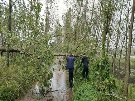 抓好受災農業生產恢復。受強風和強降雨影響,大量農田受淹、農作物倒伏(水稻、高粱、玉米等)、林木傾斜。針對受災情況,農業科技集團各轄區立即組織搶險隊伍,配合種植戶、養殖戶開展生產恢復工作,對積水的農田及時開溝排水,對倒伏農作物及時進行扶正及管護,對傾斜樹木及時扶正固定樹體。與此同時,加強農業技術指導服務,圍繞農作物種植、畜禽養殖、水產養殖等重點領域發布病蟲害防治技術指南,確保災后不發生二次傷害。