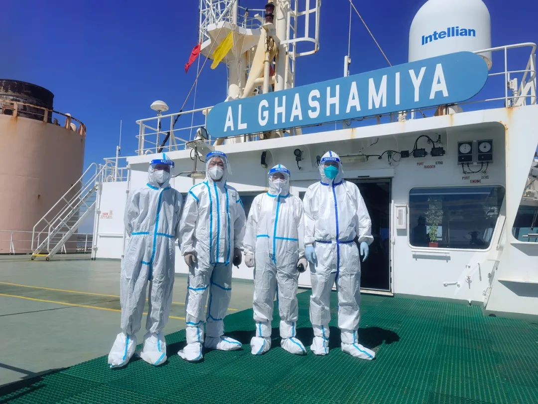 為了完成該輪來鹽城港的首次引航任務,積極服務“綠能港”建設,鹽城港引航人未雨綢繆,成立引航專班小組,積極參與航道設計、碼頭布置,提供引航建議。專班小組認真研究船舶操縱特性、港口水文和氣象條件,擬定拖輪協靠方案、制定船舶系泊計劃,在“阿爾卡莎米亞”來港之前,先后派出資深引航員前往武漢理工大學進行模擬器操縱和培訓,并赴南通洋口港登輪進行學習和交流。疫情期間登船引航,專班小組及時跟蹤船員健康狀況,對接口岸防疫小組,除了引航員“全副武裝”外,還做好應急預案工作,確保疫情防控工作安全有效。“阿爾卡莎米亞”輪的順利靠泊,再一次展現了引航人勇立潮頭,勇于擔當的意志品質。