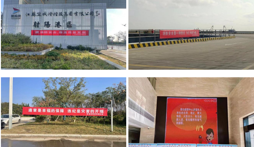 注重宣傳引導,在增強輻射力帶動力上下功夫。為做好消防宣傳月活動,進一步普及消防安全知識,全面提升港區(qū)全員的消防安全意識,提高自護、自救和互助能力,射陽港區(qū)通過在港區(qū)張貼消防宣傳海報,懸掛消防宣傳橫幅,辦公區(qū)大屏循環(huán)播放消防安全宣傳片等方式,大力宣傳消防安全科普知識,增強港區(qū)全員消防安全意識。