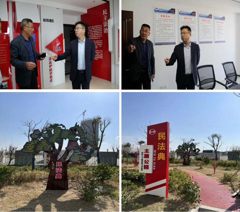 近期,射陽縣司法局局長張昊一行來到鹽城港射陽港區(qū),對港區(qū)法治文化陣地建設(shè)情況進(jìn)行調(diào)研指導(dǎo)。調(diào)研組對射陽港區(qū)利用法治文化陣地普法、學(xué)法、守法、用法的做法表示了充分肯定,并就港區(qū)今后法治文化陣地建設(shè)的方向、形式、內(nèi)容等方面提出意見和建議,重點(diǎn)對港區(qū)法治碼頭建設(shè)方案提出了建設(shè)性指導(dǎo)意見。