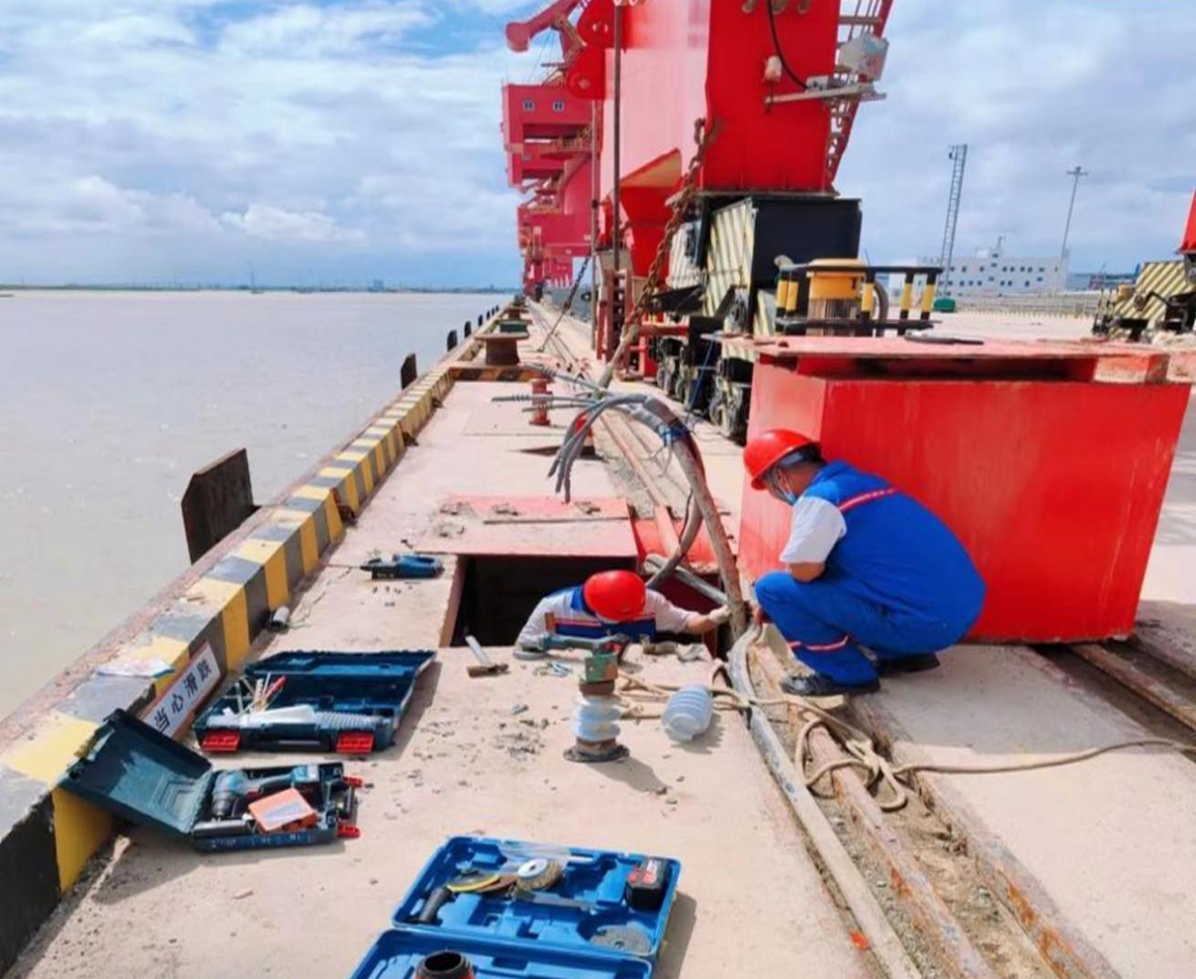 碼頭設備使用下沉式接電箱,海水濕氣大腐蝕性極強,設備組定期對電箱高壓進線終端進行檢查,對有問題的立即整改。保障碼頭正常作業,為完成全年目標任務奠定堅實基礎。