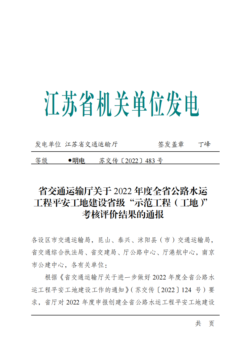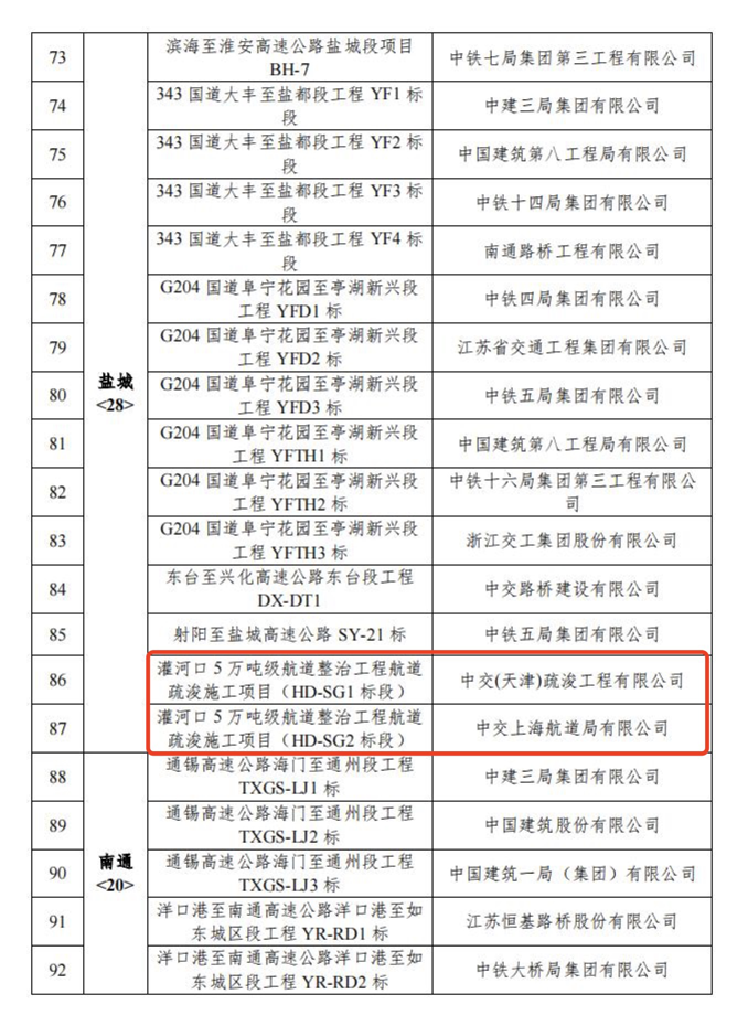 近日,省交通運輸廳發(fā)布2022年度全省公路水運工程平安工地建設省級“示范工程(工地)”考核評價結(jié)果,灌河口5萬噸級航道整治工程2個疏浚標段獲評2022年度江蘇省公路水運工程平安工地建設省級“示范工地”。