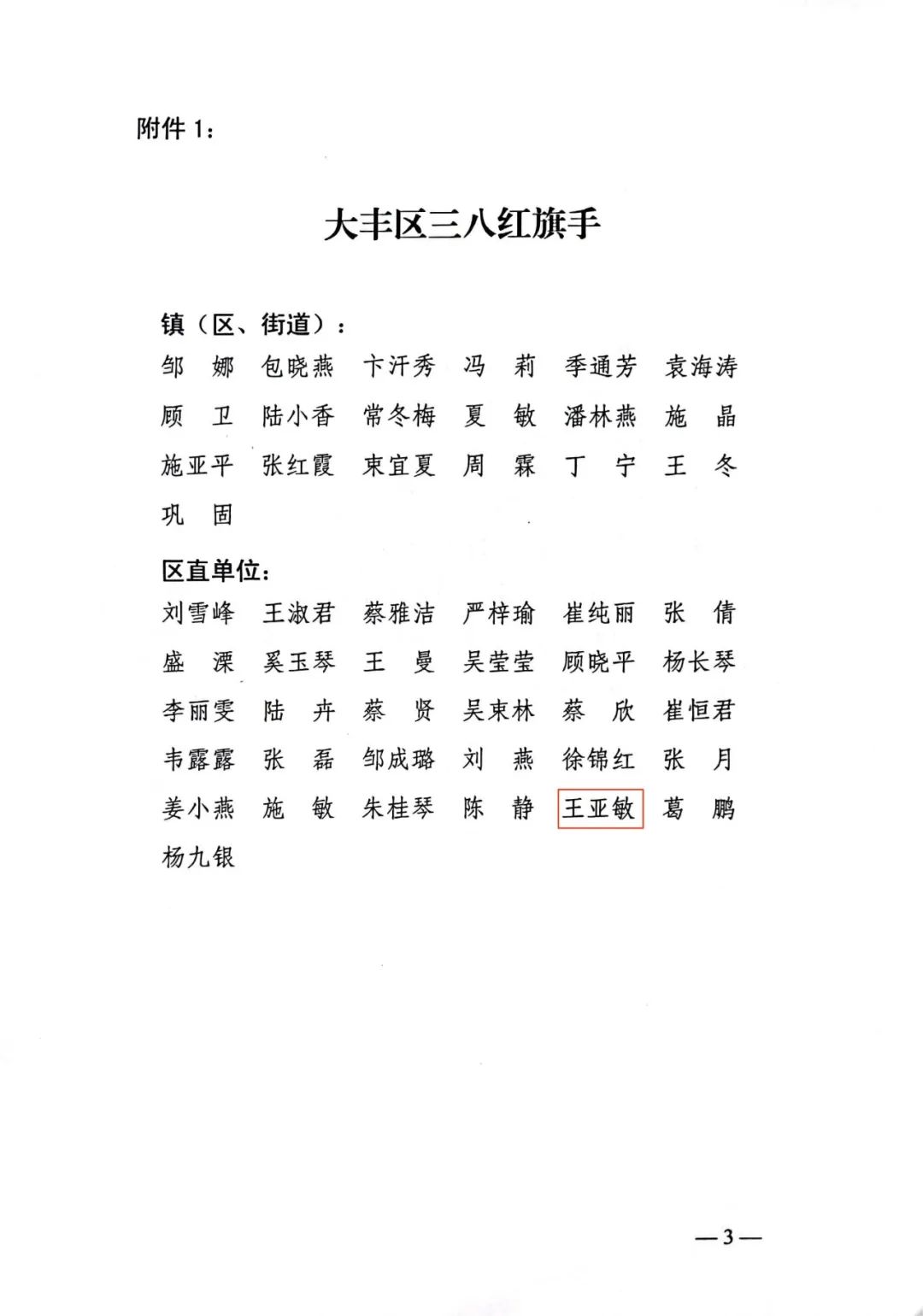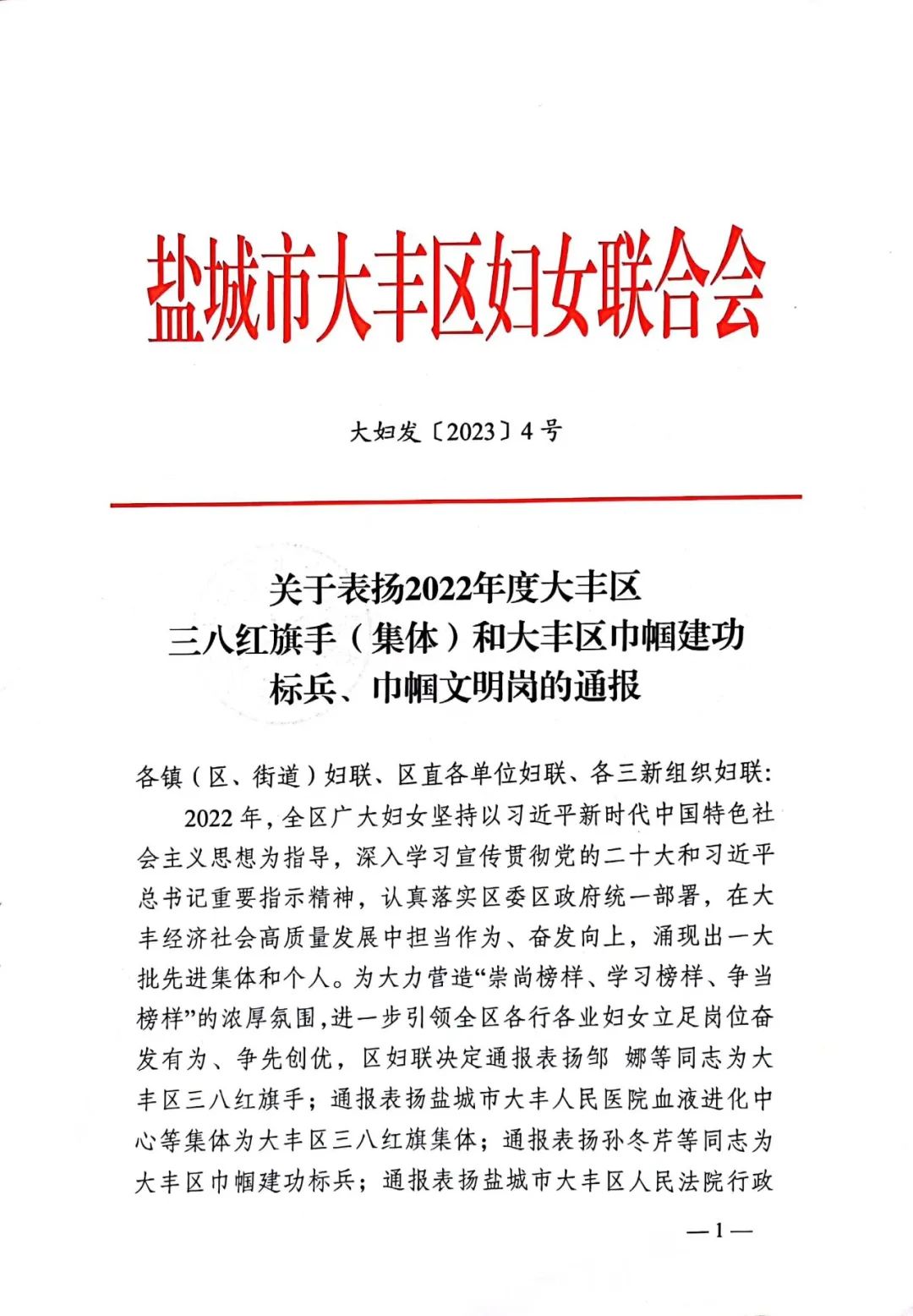 近日,大豐區婦女聯合會發表《關于表揚2022年度大豐區三八紅旗手(集體)和大豐區巾幗建功標兵、巾幗文明崗的通報》,鹽城港大豐港區成品油公司水上加油站“木蘭”班組榮獲“巾幗文明崗”榮譽稱號,班組成員王亞敏榮獲“三八紅旗手”榮譽稱號。