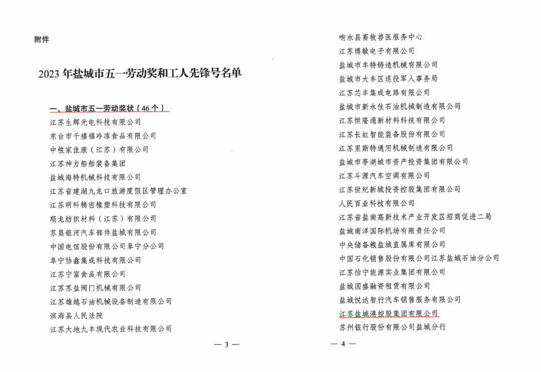 近日,鹽城市總工會(huì)印發(fā)《關(guān)于授予2023年鹽城市五一勞動(dòng)獎(jiǎng)和工人先鋒號(hào)的通知》,我集團(tuán)再獲三項(xiàng)表彰。