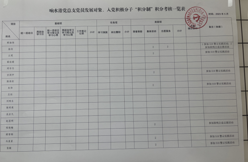 結(jié)合調(diào)研實際情況,制定《關(guān)于響水港開發(fā)集團黨員發(fā)展對象、入黨積極分子“積分制”管理考核實施辦法(試行)》,考核辦法實行年度“百分制”+N積分模式,以黨章、黨規(guī)、黨紀(jì)為基本準(zhǔn)則,以參加“基層黨組織統(tǒng)一活動日”、周政治學(xué)習(xí)、學(xué)習(xí)強國、履職盡責(zé)、志愿服務(wù)等12個方面,逐類逐條量化分值,力求全方位、近距離地掌握積極分子的日常表現(xiàn)。截至目前,響水港區(qū)有16余名發(fā)展對象、入黨積極分子已成為第一批“質(zhì)檢”對象。響水港集團黨總支通過積分管理,實現(xiàn)入黨積極分子管理由抽象向具體轉(zhuǎn)變,確保入黨積極分子努力有方向、實做有標(biāo)準(zhǔn)、評判有依據(jù),從源頭上把牢黨員發(fā)展入口關(guān),提高發(fā)展黨員工作質(zhì)量的同時,為響水港區(qū)融入新賽道,勇做主力軍注入新的活力。