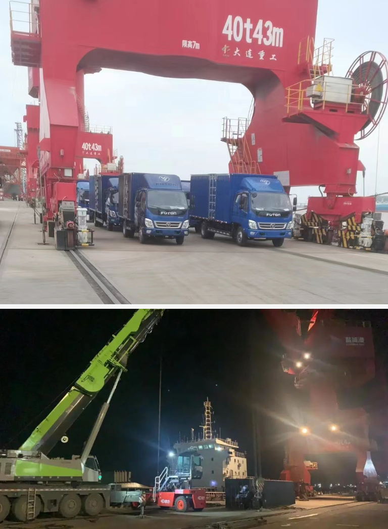 6月5日上午,響水港碼頭4#泊位,伴隨著明亮的汽笛聲,裝載10臺挖掘機、4臺泵車、2臺罐車、6臺農用車、2TEU隨車配件的“寶津1”輪順利啟航駛向廣西防城港,這是響水港區首次承擔大型工程機械設備的裝載任務,也是響水港區首次接卸該貨種。