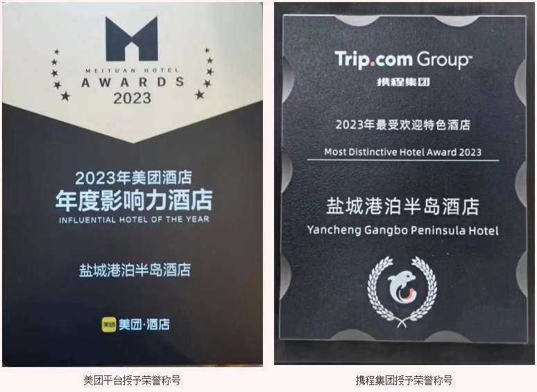 抖音官方平臺、直客通、OTA網絡平臺等新媒體渠道宣傳推廣效果顯著,截至目前,抖音營收額113770元,直客通營收額103982元。同時,港泊半島酒店喜獲“2023年美團酒店年度影響力酒店”、“2023年攜程集團最受歡迎特色酒店”兩項榮譽稱號。(榮譽獎牌見下圖)