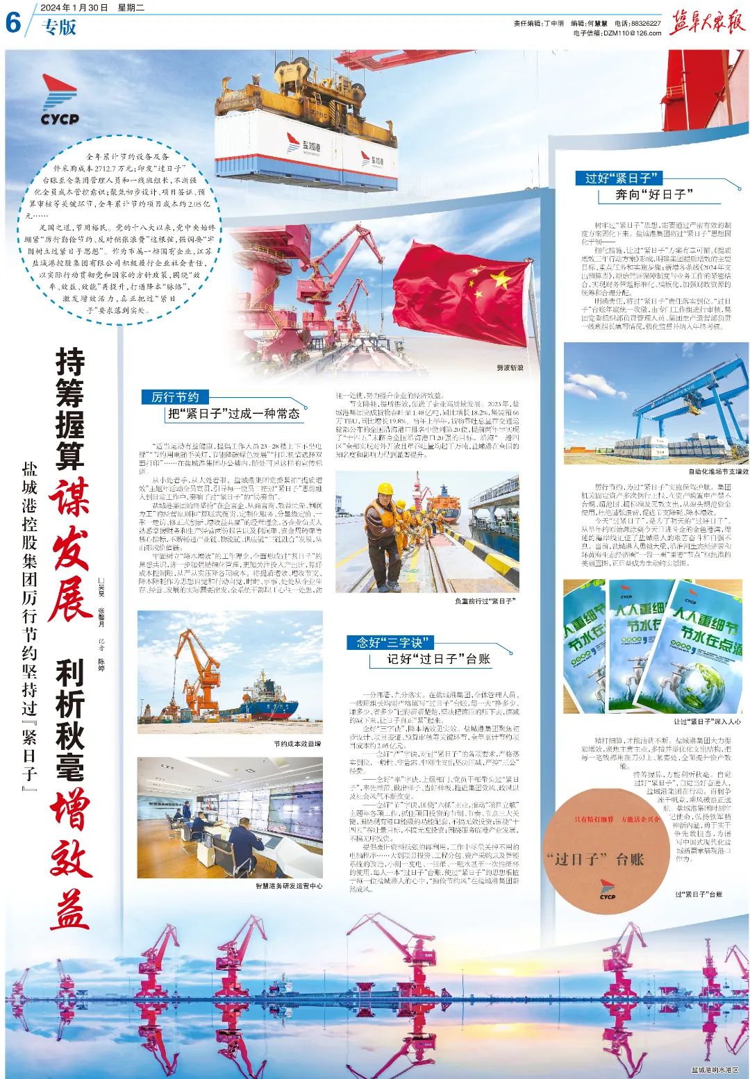 一分部署,九分落實。在鹽城港集團,全體管理人員、一線班組長均需嚴格填寫“過日子”臺賬,每一天“掙多少、賺多少、省多少”記得清清楚楚,堅決把該壓的壓下去,該減的減下來,讓日子真正“緊”起來。