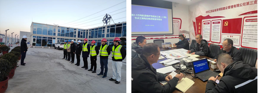 作為集團成立以來的第一個臨時黨支部,中共江蘇鹽城港射陽港3.5萬噸航道工程臨時支部委員會深入學習貫徹黨的二十大精神,傳承弘揚不怕困難、不畏艱險,勇于斗爭、敢于勝利的鐵軍精神,發揮基層黨組織和共產黨員戰斗堡壘和先鋒模范作用,全面推行“黨建+項目管理”“黨建+安全生產”工作,積極開展工程建設管理政策、施工工藝措施等方面研究,充分吸收合理化建議,協同配合、加強調度,及時會商解決遇到的困難和問題,形成推進項目驗收的強大工作合力。