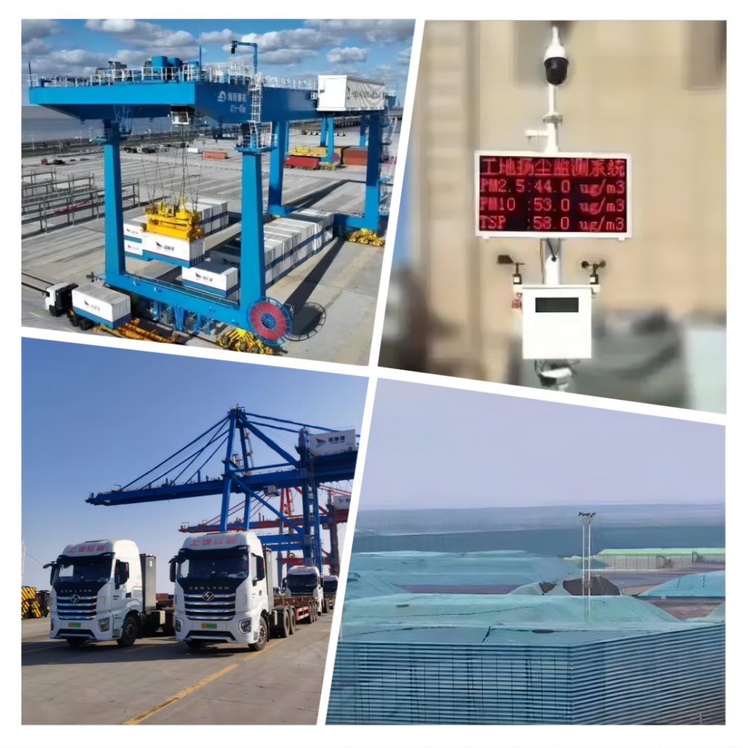 環(huán)顧大豐港區(qū),清潔能源的使用遍布四周。分布式太陽(yáng)能光伏發(fā)電系統(tǒng)和1座主機(jī)3MW的風(fēng)力發(fā)電站源源不斷地的將電能輸送到港區(qū)各地,40輛新能源電動(dòng)集卡往來(lái)穿梭裝卸貨物。5049米的全密封散糧運(yùn)輸氣墊機(jī)有效避免粉塵飛揚(yáng),26臺(tái)門座式起重機(jī)和18條帶式輸送機(jī)均已采用變頻節(jié)能技術(shù),39套大型機(jī)械中采用勢(shì)能回收技術(shù)達(dá)59%。18個(gè)粉塵在線監(jiān)測(cè)點(diǎn),實(shí)時(shí)監(jiān)控廠區(qū)粉塵濃度。堆場(chǎng)長(zhǎng)達(dá)3641米的防風(fēng)抑塵網(wǎng)守護(hù)著碧水藍(lán)天,物料堆垛100%苫蓋,堆場(chǎng)噴淋系統(tǒng)常態(tài)化開(kāi)啟;中水回收利用率達(dá)到60%;可綠化區(qū)域綠化率不低于80%。碼頭岸電建設(shè)實(shí)現(xiàn)100%全覆蓋,船舶污染物接受率達(dá)100%。自動(dòng)化集裝箱堆場(chǎng)投入運(yùn)營(yíng),大幅度提高集團(tuán)港口數(shù)字化、智能化水平。干散貨堆場(chǎng)封閉式氣膜倉(cāng)、綜合物流等倉(cāng)庫(kù)屋頂光伏發(fā)電項(xiàng)目正在積極推進(jìn)中。