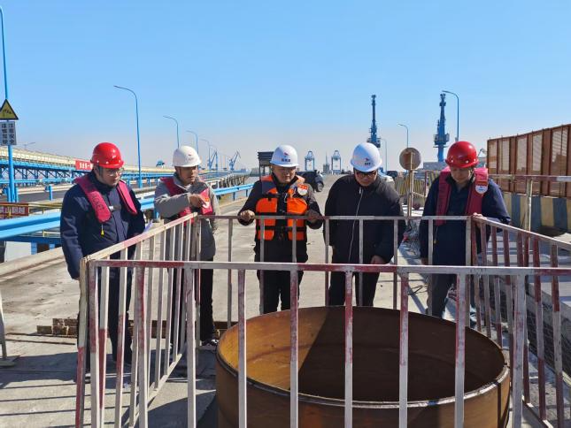 在大豐港區(qū)一期引橋搶險(xiǎn)加固項(xiàng)目施工現(xiàn)場(chǎng)中