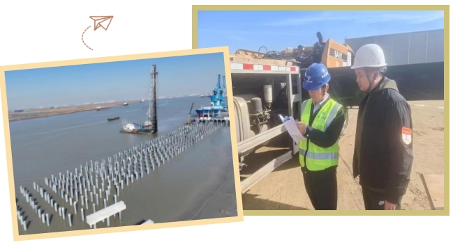在響水港區(qū)小蟒牛作業(yè)區(qū)碼頭二期工程(1#~3#泊位)項(xiàng)目施工現(xiàn)場(chǎng),每一位建設(shè)者都身著熒光警示安全背心在鋼鐵森林間躍動(dòng),恰似隨風(fēng)起伏的油菜花海。項(xiàng)目團(tuán)隊(duì)科學(xué)優(yōu)化施工方案,協(xié)同設(shè)計(jì)單位,累計(jì)調(diào)整樁位23次,并先后8次優(yōu)化打樁順序,為完成PHC沉樁作業(yè)打下堅(jiān)實(shí)基礎(chǔ),推動(dòng)項(xiàng)目向全面竣工大步邁進(jìn)。