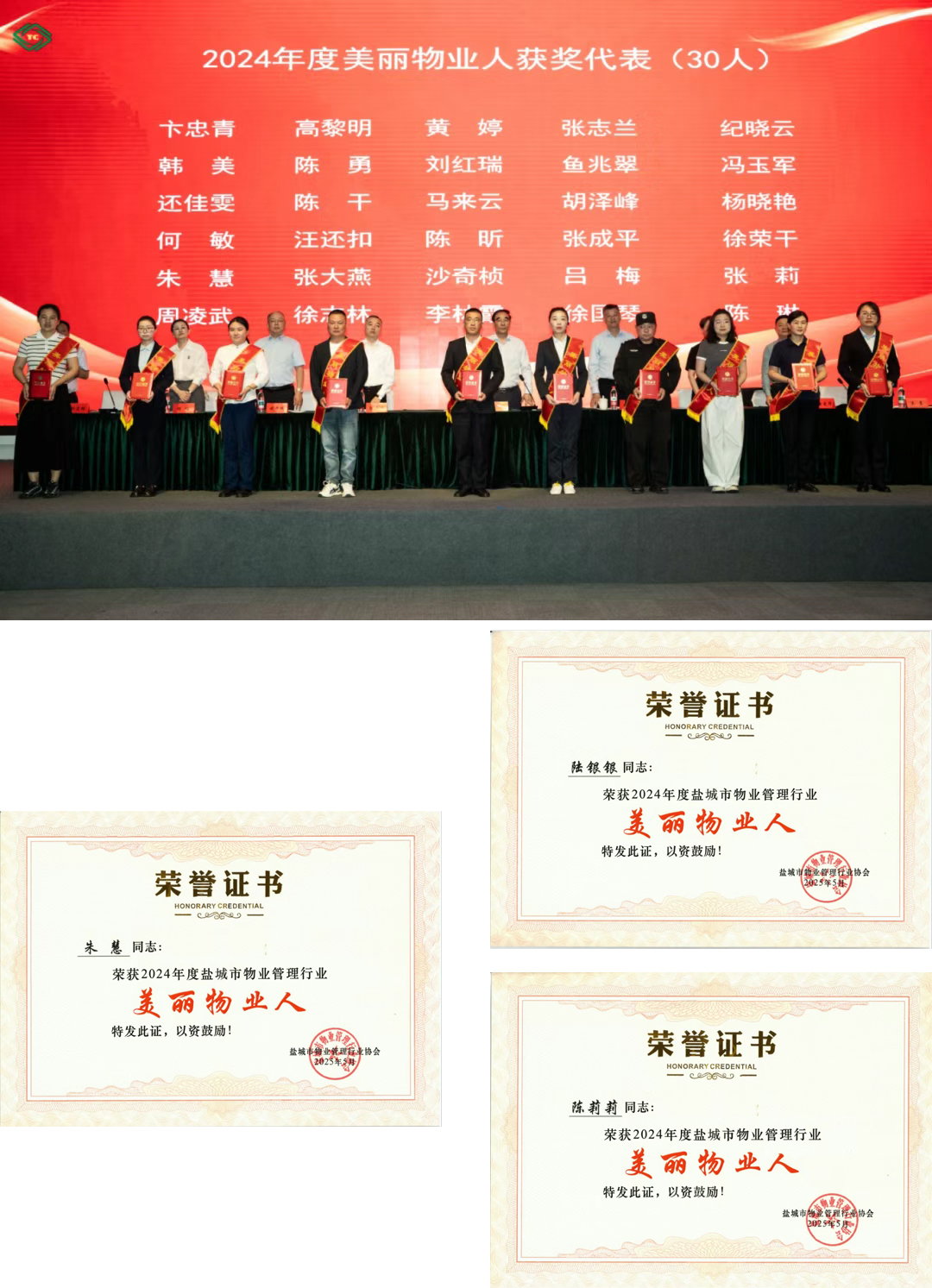 近年來,鹽城港物業公司按照集團“提質增效年”工作要求,苦練內功,外拓市場。始終錨定品質核心,秉承客戶至上理念,積極創優品質管理,打造品牌核心競爭力;始終聚焦業務拓展,緊扣年度目標任務,在穩固基礎業務上,持續深耕創收領域;始終筑牢人才基石,堅持人才隊伍建設,朱慧、陳莉莉、陸銀銀三位同志憑借在各自崗位上的突出貢獻和敬業精神,榮獲“2024年度鹽城市物業管理行業美麗物業人”榮譽稱號。
