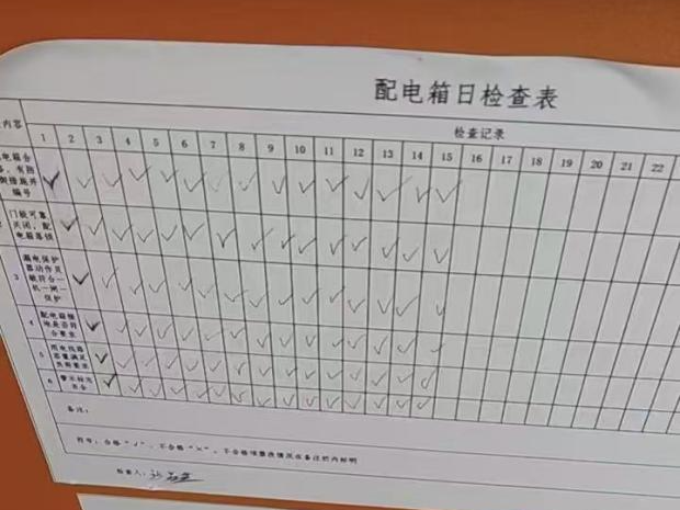 每日對配電箱進行實際檢查(如箱體是否破損、箱門是否關閉嚴密、線路是否老化),及時更新檢查記錄,確保檢查記錄與實際情況一致。