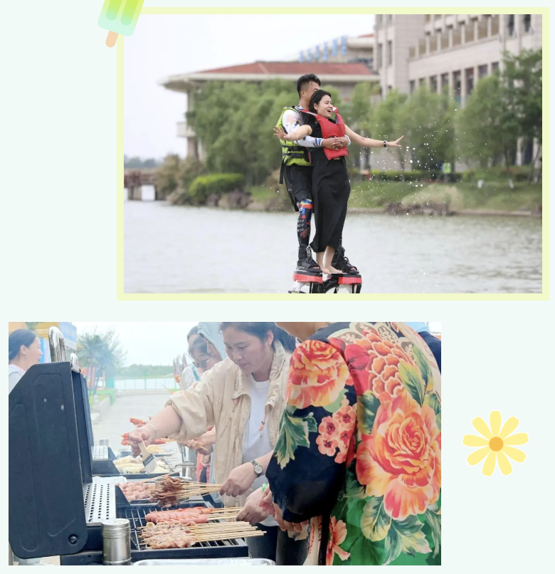 此次“港泊狂歡?去浪一夏”夏日盛宴不僅在游客接待量上表現(xiàn)出色,在推動(dòng)文旅集團(tuán)“五朵金花”產(chǎn)業(yè)發(fā)展方面也成效顯著。除了水上運(yùn)動(dòng)項(xiàng)目,鹽城港文旅集團(tuán)還注重配套服務(wù)的完善,全力滿足游客游、購(gòu)、娛、商及吃、喝、玩、樂的多樣化需求。日月湖畔錯(cuò)落有致的帳篷營(yíng)地,燒烤區(qū)飄散的煙火氣與日月湖相映成趣,為游客提供了親近自然的休憩空間;莎士比亞國(guó)際商貿(mào)小鎮(zhèn)充滿異域風(fēng)情,游客在此選購(gòu)全球好物。這些豐富的配套設(shè)施,使得日月湖不僅是水上運(yùn)動(dòng)的樂園,更是綜合性的休閑度假勝地,進(jìn)一步提升了對(duì)周邊游客的吸引力,無(wú)論是家庭出游還是團(tuán)隊(duì)團(tuán)建,都能在這里找到屬于自己的樂趣。