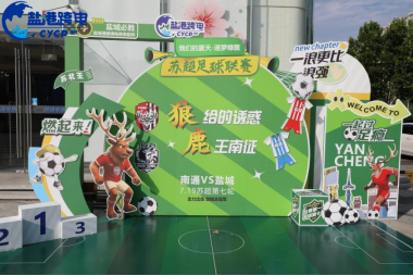 還未踏入寶龍店,蘇超足球聯(lián)賽的氛圍已撲面而來——門店外,“狼的誘惑”“鹿王南征”等賽事主題美陳驚艷亮相,南通VS鹽城的對戰(zhàn)張力直接拉滿。足球、球員卡通形象與創(chuàng)意標(biāo)語巧妙融合,提前為球迷打造打卡勝地,賽事未開,打卡熱情已擋不住!