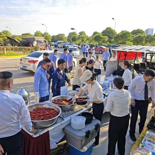 “星廚外擺”的活動好評不斷,市民排隊選購的場景成為社區一景。針對近期持續高溫天氣,酒店高度重視食品安全與品質保障,一是全程恒溫保障:確保熱食恒溫、冷食冷藏(0-4℃),有效抑制細菌滋生。二是嚴控出品時效:嚴格執行“即制即送、限時銷售”原則,所有菜品從制作完成到送達銷售點不超過60分鐘,在攤位展示銷售時間嚴格控制在90分鐘以內,超時未售出即刻下架回收,杜絕食品安全隱患。三是強化人員防護:所有外擺服務人員均佩戴口罩、一次性手套,嚴格執行崗前健康檢查和手部消毒流程。四是動態質量監控:現場管理人員進行高頻次巡檢,確保食品色澤、氣味、狀態始終符合五星級出品標準。