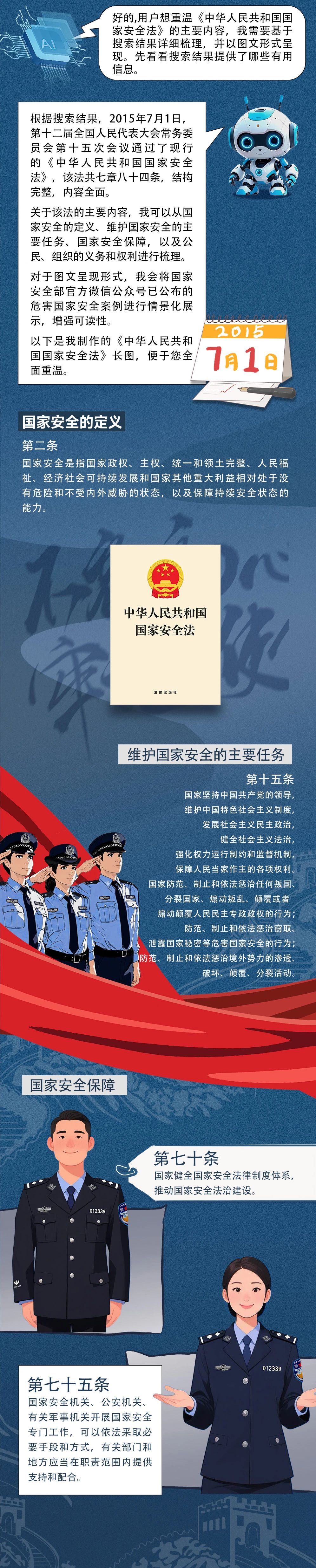 今年是《中華人民共和國(guó)國(guó)家安全法》頒布實(shí)施10周年。十年來,該法有力保障了總體國(guó)家安全觀貫徹落實(shí),有力促進(jìn)了國(guó)家安全體系和能力現(xiàn)代化。下面,讓我們一同回顧該法主要內(nèi)容,共同增強(qiáng)國(guó)家安全意識(shí),凝聚起全社會(huì)維護(hù)國(guó)家安全的強(qiáng)大合力。