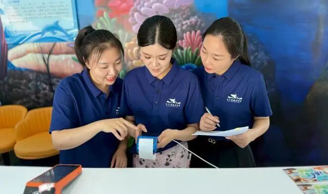 “作為大豐港海洋世界的員工,我們不僅是海洋知識(shí)傳播者,更是景區(qū)形象的守護(hù)者?!庇慰椭行睦蠁T工張梅玲向新員工們強(qiáng)調(diào)服務(wù)初心。她帶領(lǐng)新員工從接聽電話、商品銷售、門票銷售、年卡核銷到游客接待等方面耐心講解每個(gè)細(xì)節(jié)。“游客的安全和體驗(yàn)永遠(yuǎn)是第一位,我們多一份細(xì)心,游客就多一份安心”。老員工不僅傳授技能,更注重傳承“專業(yè)、責(zé)任、創(chuàng)新”工作理念。在老員工的帶動(dòng)下,新員工積極主動(dòng)“實(shí)操賦能”,真正從“學(xué)習(xí)者”變成“參與者”。