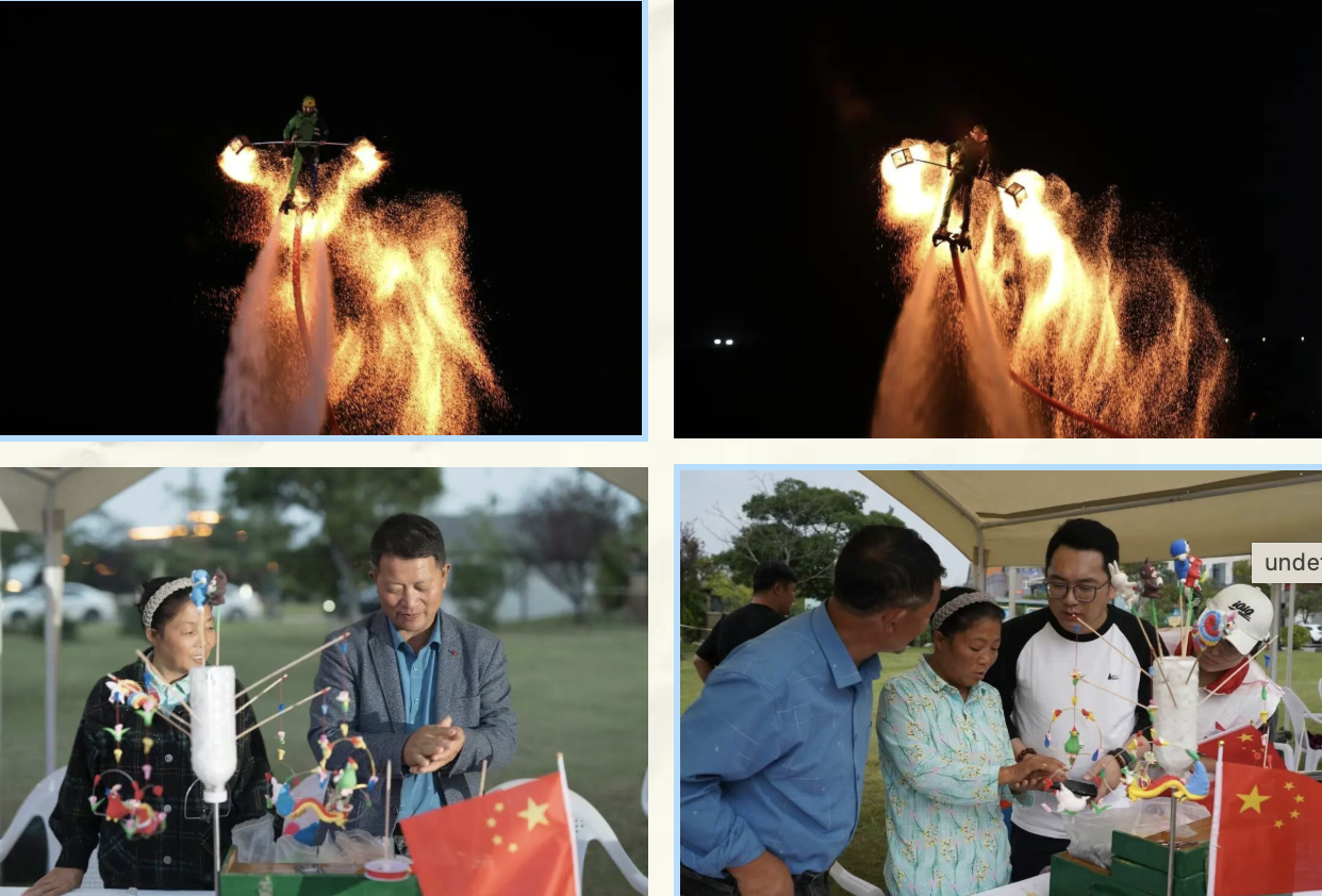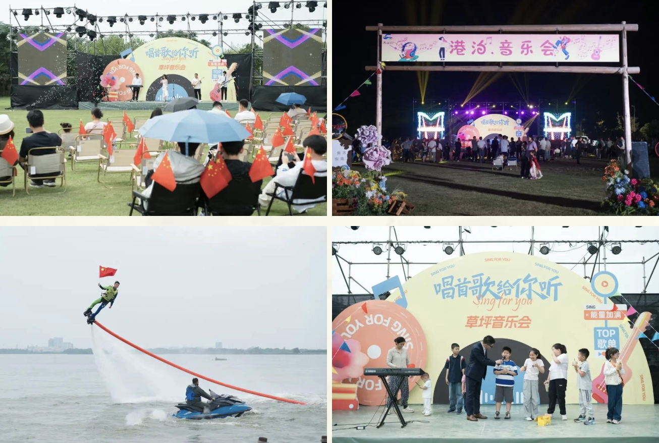 如果說非遺是文化的沉淀,那么音樂、露營與水上運動則為假日注入了青春活力。日月湖上,摩托艇、空中飛人等水上項目吸引年輕人逐浪而行;草坪露營區飄起燒烤香氣,伴隨著民謠樂隊的現場演唱,游客們圍坐暢談,盡享秋日浪漫。創意市集與文創展區不僅為游客提供了將好物帶回家的機會,更讓人們通過視覺、聽覺、味覺、觸覺等多維度的感受,領略港泊文旅的獨特韻味。“沒想到非遺能這么潮!白天玩水上項目,晚上看火壺表演,假期安排得滿滿當當。”從南京自駕而來的游客表示。