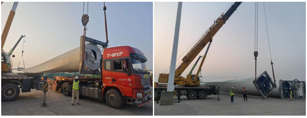 “百日攻堅(jiān)”號(hào)角吹響以來(lái),鹽城港保稅物流中心主動(dòng)聚焦重大件貨物物流服務(wù)痛點(diǎn)難點(diǎn),將風(fēng)電葉片入庫(kù)作業(yè)列為重點(diǎn)攻堅(jiān)任務(wù)。籌備階段,中心組建專項(xiàng)攻堅(jiān)小組,綜合研判運(yùn)輸銜接、場(chǎng)地調(diào)度、機(jī)械適配等多維度因素,制定“一貨一策”詳盡作業(yè)方案,對(duì)流程節(jié)點(diǎn)逐一梳理、閉環(huán)解決;同步協(xié)調(diào)管委會(huì)、海關(guān)等職能部門,針對(duì)風(fēng)電葉片運(yùn)輸?shù)缆吠ㄐ行枨螅ㄟ^(guò)拆除影響通行的路燈等舉措保障道路通暢,進(jìn)一步優(yōu)化作業(yè)保障體系;搭建分工明確、協(xié)同高效的作業(yè)團(tuán)隊(duì),提供全程精細(xì)化服務(wù)。針對(duì)風(fēng)電葉片“超長(zhǎng)、超重”的特性,中心專項(xiàng)開(kāi)展安全操作集中培訓(xùn),明確崗位職責(zé)、規(guī)范統(tǒng)一指揮流程,強(qiáng)化安全技術(shù)交底與風(fēng)險(xiǎn)點(diǎn)辨識(shí)控制,全方位筑牢大件作業(yè)安全防線,以專業(yè)能力為攻堅(jiān)任務(wù)保駕護(hù)航。