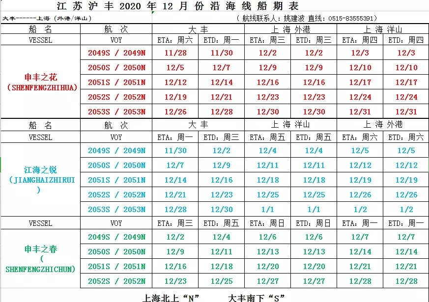 劃重點:滬鹽專線十二月份船期