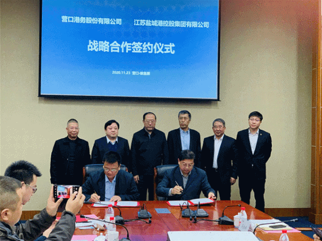 11月23-24日,集團黨委書記、董事長、總經(jīng)理周正雄一行相繼拜訪營口港務集團、大連港集團以及遼寧港口集團,并與營口港、大連港、上海郁州海運簽訂戰(zhàn)略合作協(xié)議,開通了鹽城港至營口港的集裝箱班輪航線。